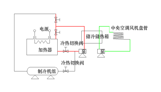 在谷電時(shí)間段內(nèi)將電能轉(zhuǎn)換成熱量(冷量),同時(shí)將該熱量(冷量)存起來供全天使用。固定儲能谷電蓄熱+谷電蓄冷